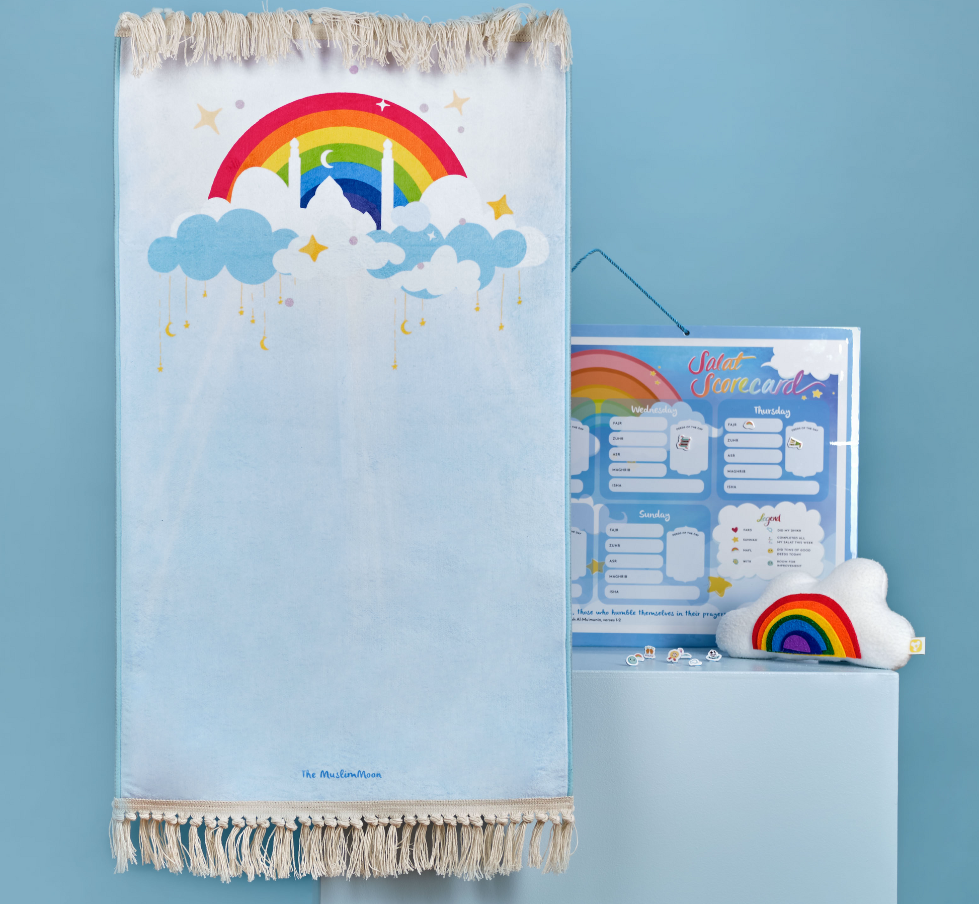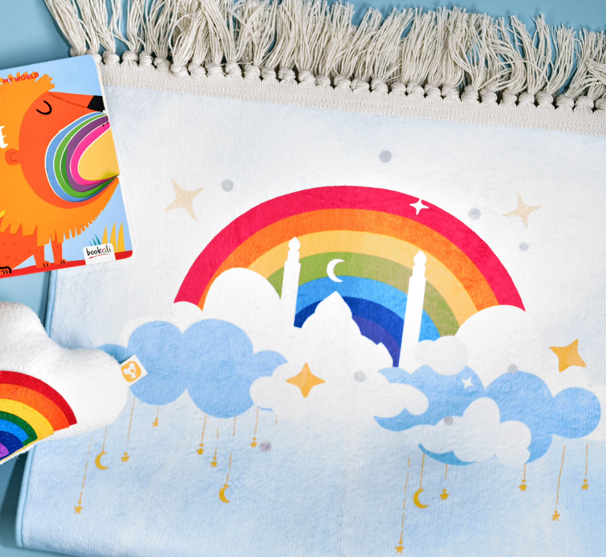 Bearing witness to a rainbow feels special and brings a smile to everyone’s face, especially a child. This mat is designed to bring a smile to your child’s face every time they pray and to motivate them to work towards the beautiful and special journey of fostering the love of Salat on the road to Jannah.