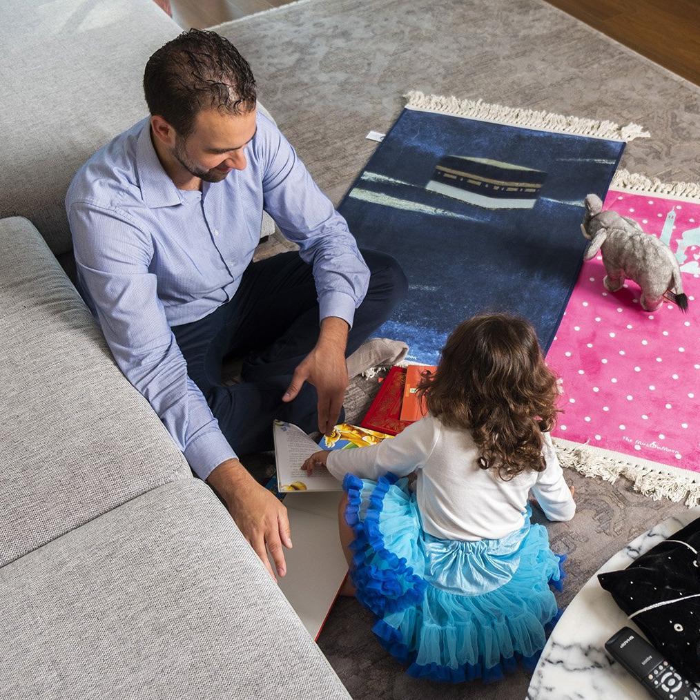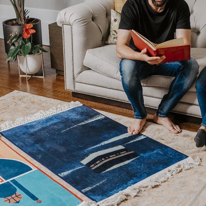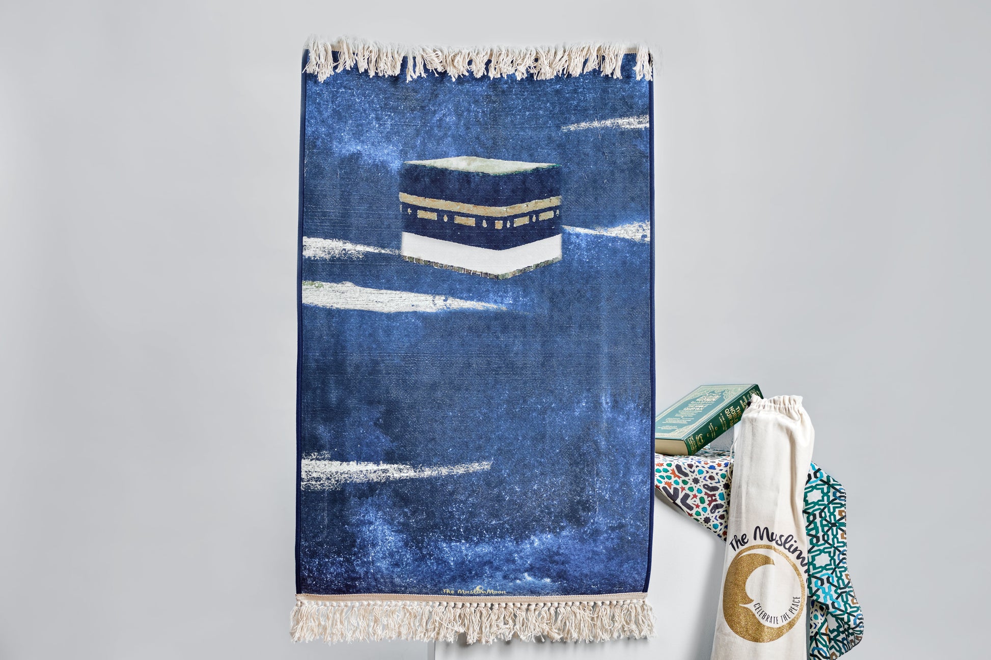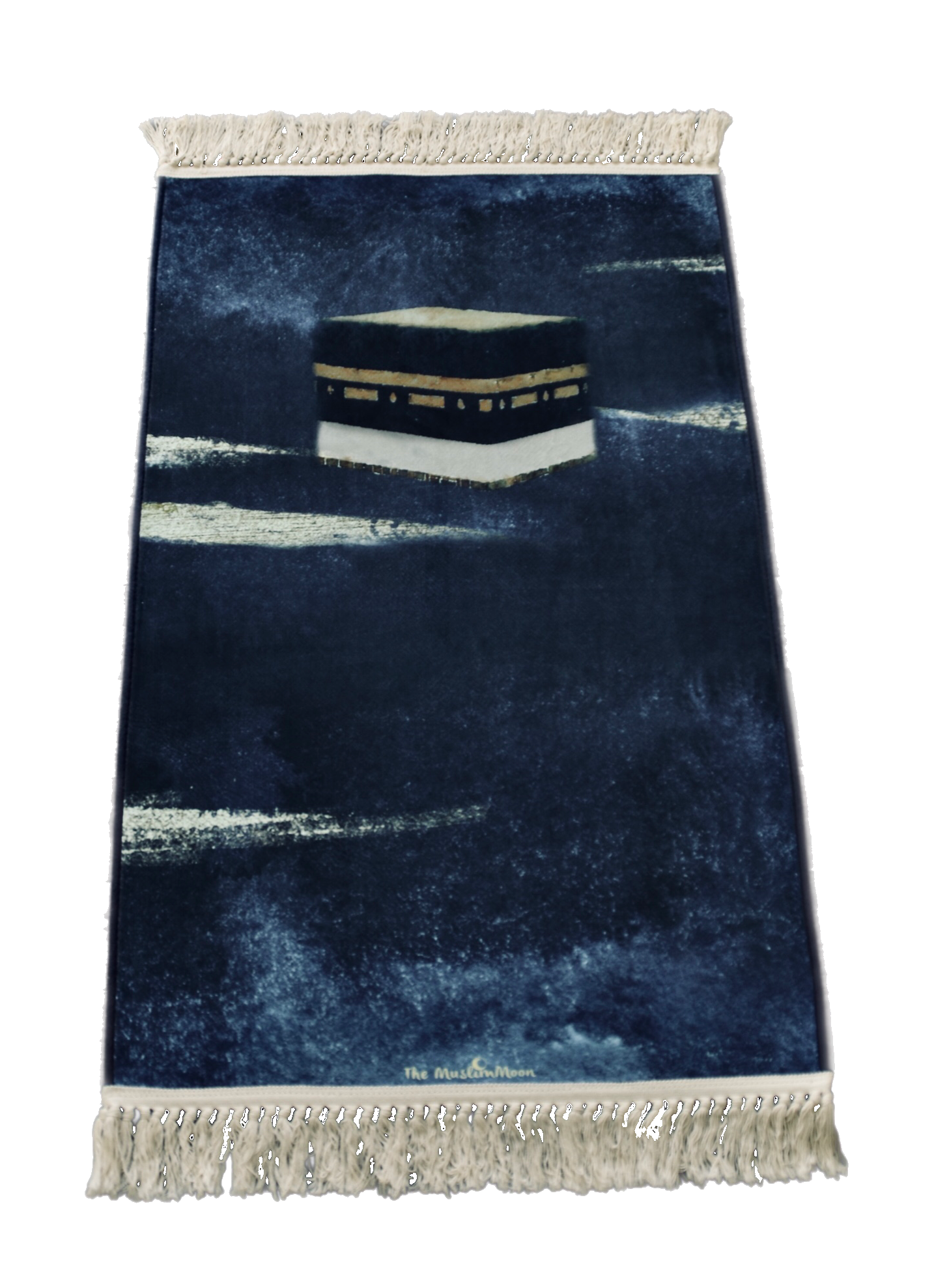 Cube, the literal meaning of the Arabic word Ka’bah, is designed to emphasize the “Oneness” of Allah, the bold and vivid hues of blue of this prayer mat draw your attention to the majestic beauty of the Kaaba and hold it in singular focus for your Salah.