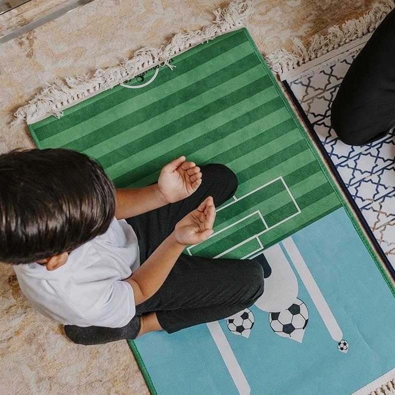 A prayer mat designed for the most faithful soccer lover. The ultimate goal of prayer is to worship Allah. This prayer mat motivates your child to focus on their most important goal - Salah.